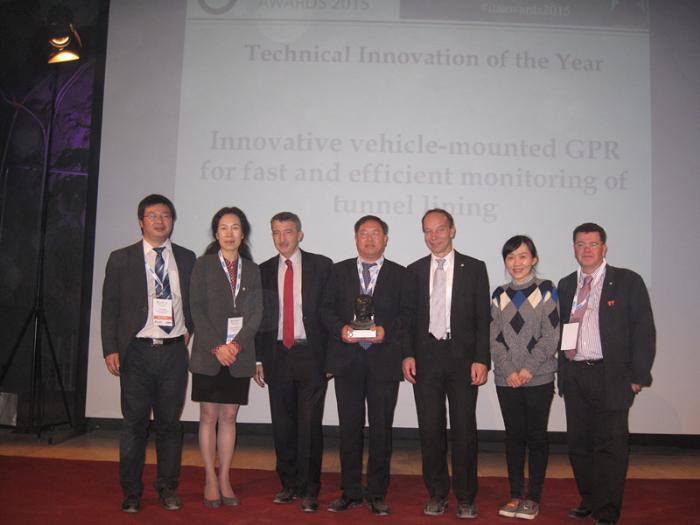 11月19日,國際隧道與地下空間協(xié)會(International Tunnelling and Underground Space Association,簡稱ITA)在瑞士Hagerbach試驗(yàn)長廊內(nèi)召開頒獎大會。西南交通大學(xué)地球科學(xué)與環(huán)境工程學(xué)院昝月穩(wěn)教授、李志林教授等申報(bào)的“高效快速檢測隧道襯砌結(jié)構(gòu)狀態(tài)車載探地雷達(dá)新技術(shù)”榮獲ITA2015年“年度技術(shù)創(chuàng)新獎”(Technical Innovation of the Year)。這是ITA的首個年度技術(shù)創(chuàng)新獎,也是中國今年獲得的唯一獎項(xiàng)。